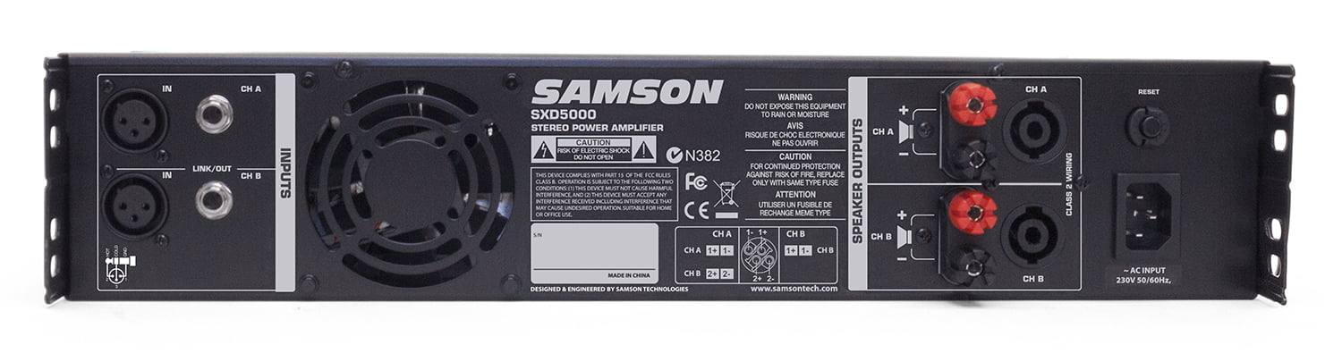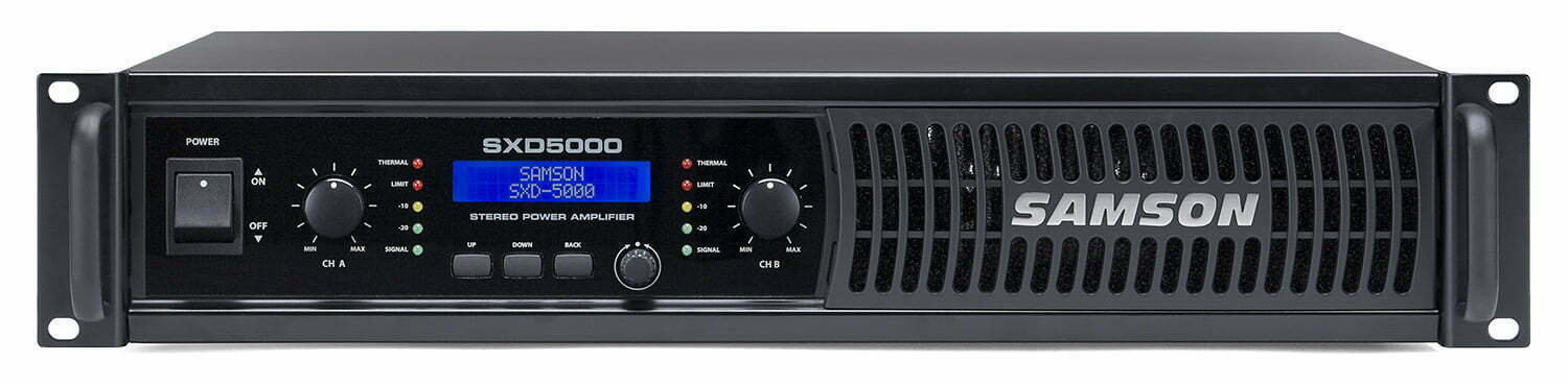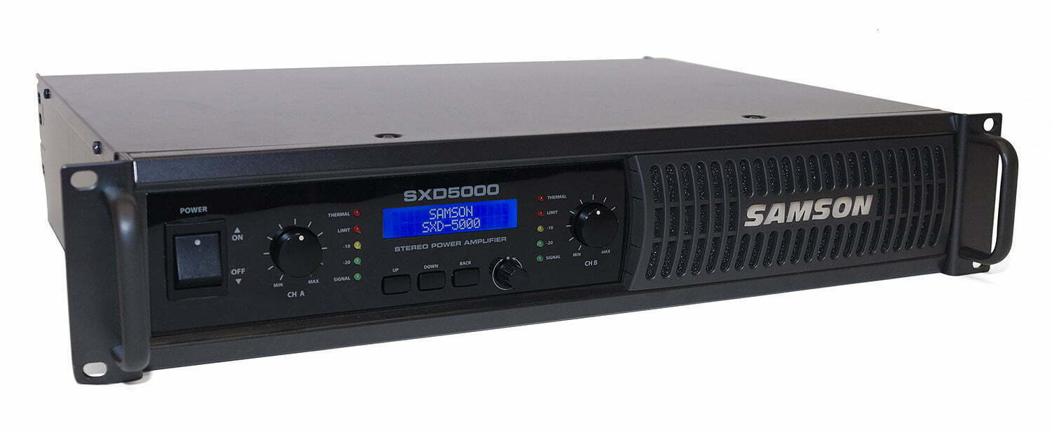 Công suất SamSon SDX5000 Bộ khuếch đại âm thanh nổi chuyên nghiệp với điều khiển DSP tiên tiến, công suất dồi dào cho hầu hết các cấu hình loa.