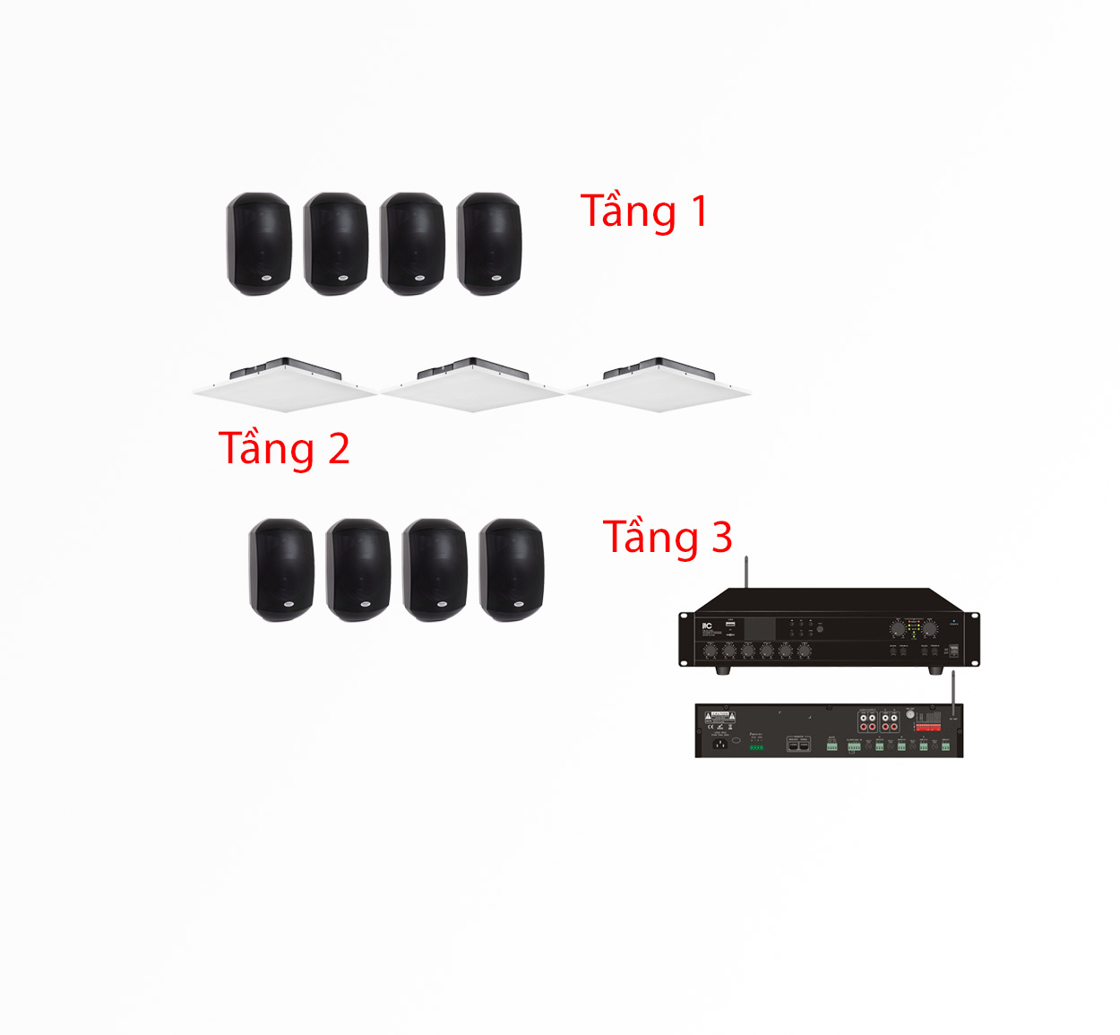 Hệ thống thiết bị mà Âm Thanh Hay lựa chọn cho mô hình 3 tầng luôn đảm bảo hiệu năng cao, bền bỉ, dễ vận hành. Sự kết hợp giữa loa, amply và bộ xử lý âm thanh giúp từng tầng hoạt động độc lập nhưng vẫn giữ được sự thống nhất về chất âm, mang lại trải nghiệm mượt mà cho cả nhân viên và khách hàng.